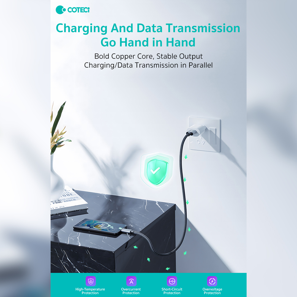 Data kabl Coteci 87313 60W 10 Gbps USB 3.0 na Type C crni 2m