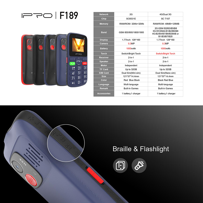 Mobilni telefon IPRO Senior III F189 1.8 DS 32MB / 32MB crno plavi