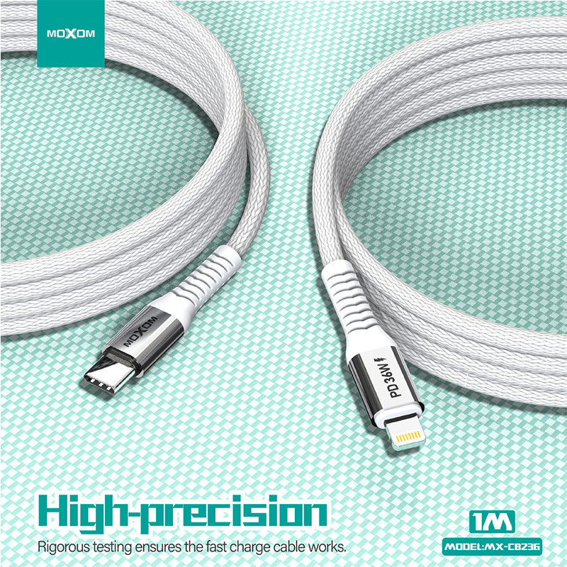 USB Data kabal Moxom MX-CB236 PD 36W Type C na Lightning 1m beli